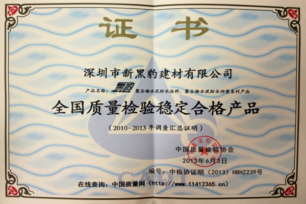 《全國質(zhì)量檢驗穩(wěn)定合格產(chǎn)品》證書
